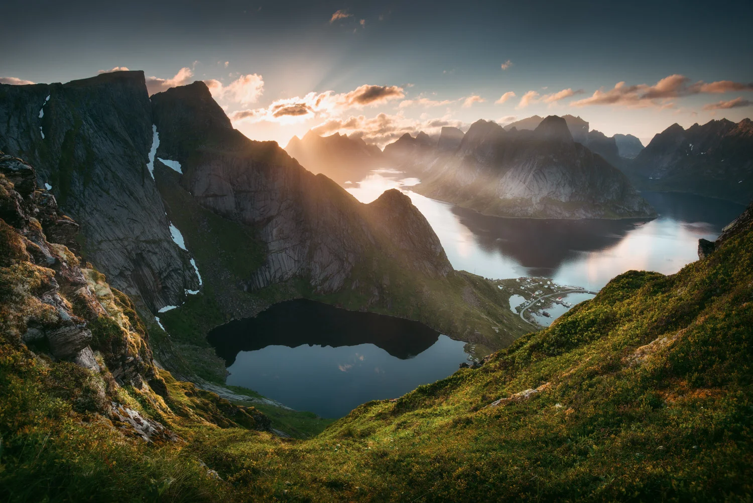 Lofoten and Vesterål archipelago is one of the biggest tourist attractions of northern Norway. The islands stretch along the coast from north to south as a string of pearls. Explore the midnight sun, the world's largest sea stream, the mountain landscape far beyond the Arctic Circle, and the ancient Viking history.